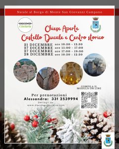 Il Comune di Monte San Giovanni Campano, in collaborazione con l’Assessorato alla Cultura e l’associazione Discover Ciociaria, è lieto di presentare il progetto “Natale al Borgo di Monte San Giovanni Campano”, un’iniziativa di valorizzazione e promozione turistica pensata per far conoscere e riscoprire il patrimonio storico, artistico e religioso del nostro centro storico.
